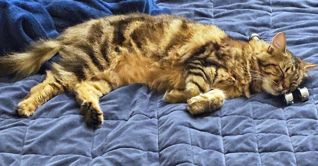 Once you get your cat to this point of comfort with tuning forks, their biofield is open for deeper types of sessions. That’s where I’ll be going next with the lovely Tiger cat.